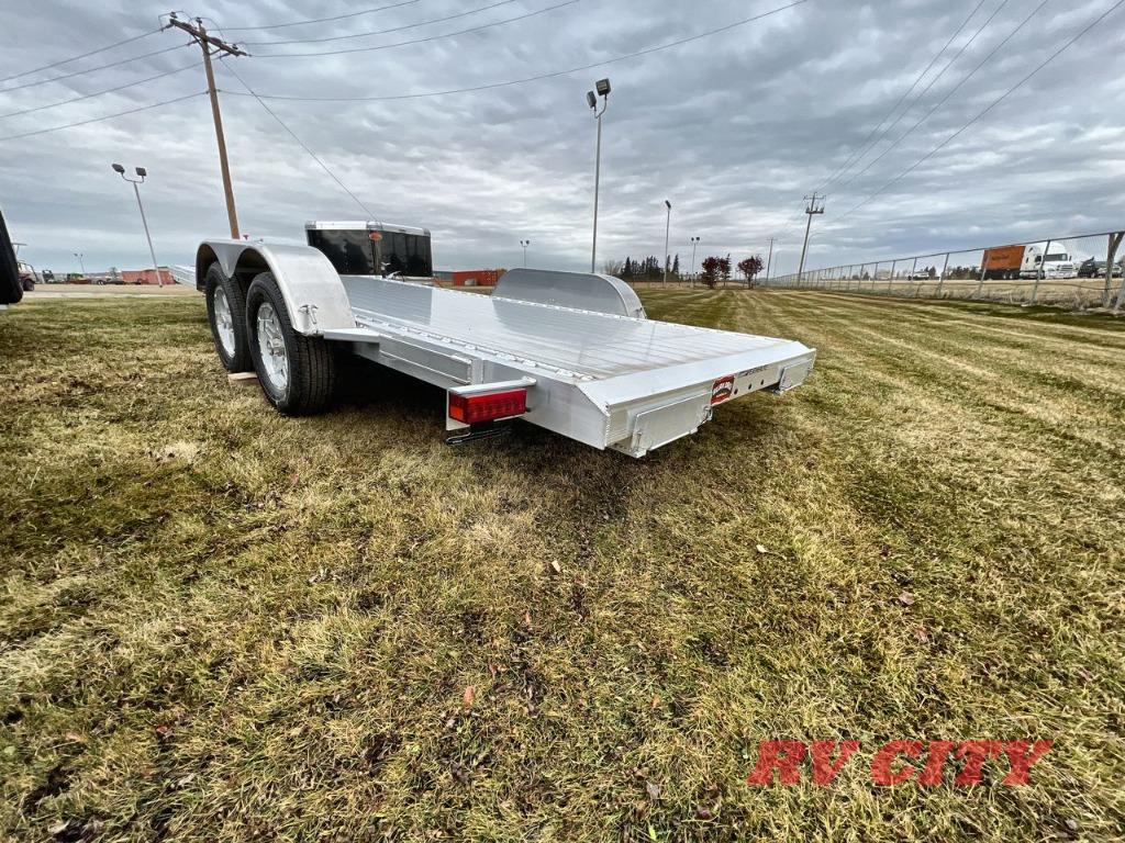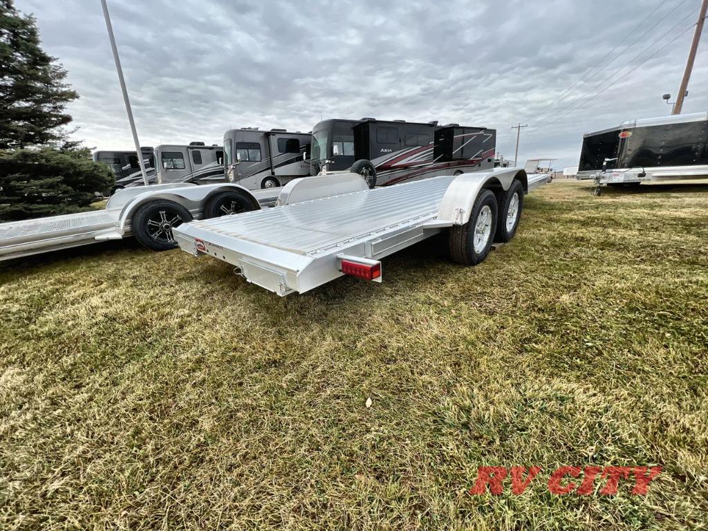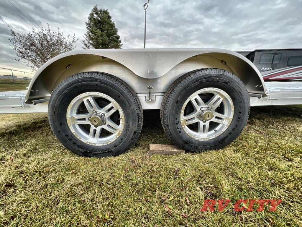 Bumper pull Model 3182 ranges in length from 16' to 22' with a width of 8'6". It is 83 1/2" between fenders and includes 3500 lbs. axles and aluminum wheels.