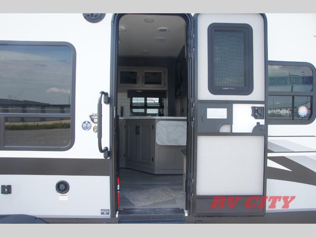 Whether you camp with your family or group of friends, there will be plenty of space to walk around with the slide out kitchen amenities, and to sleep with space for seven! The cook will have a pantry and an 8 cu. ft. refrigerator to store lots of ingredients and cold items, and the flip-up counter will come in handy when washing the dishes. There is a dinette if you want to eat inside, a full bathroom in the rear corner to keep everyone clean, and a handy coat closet next to the entry. You can enjoy privacy in the front bedroom with a walk-around queen bed, and the double size bunks sleeps four. The cook will love the choice of making meals using the outside kitchen, and the 20' power awning offers an outdoor living area with protection.