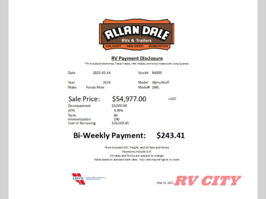 Any price listed excludes GST. Manufacturer pictures, specifications, and features may be used in place of actual units on our lot. Please contact us @ 1-888-438-8588 for availability as our inventory changes rapidly.