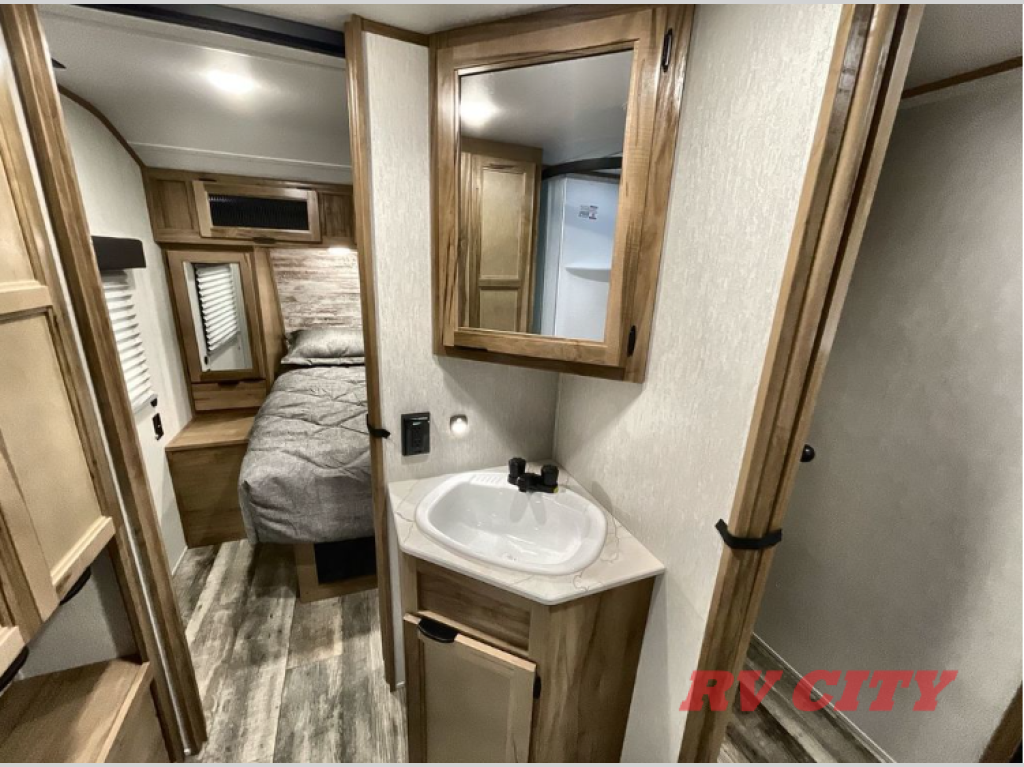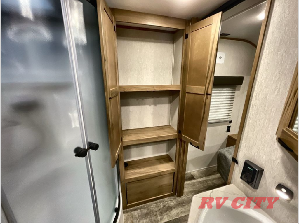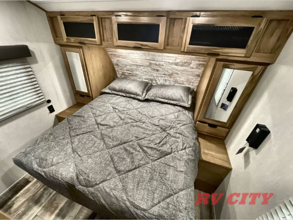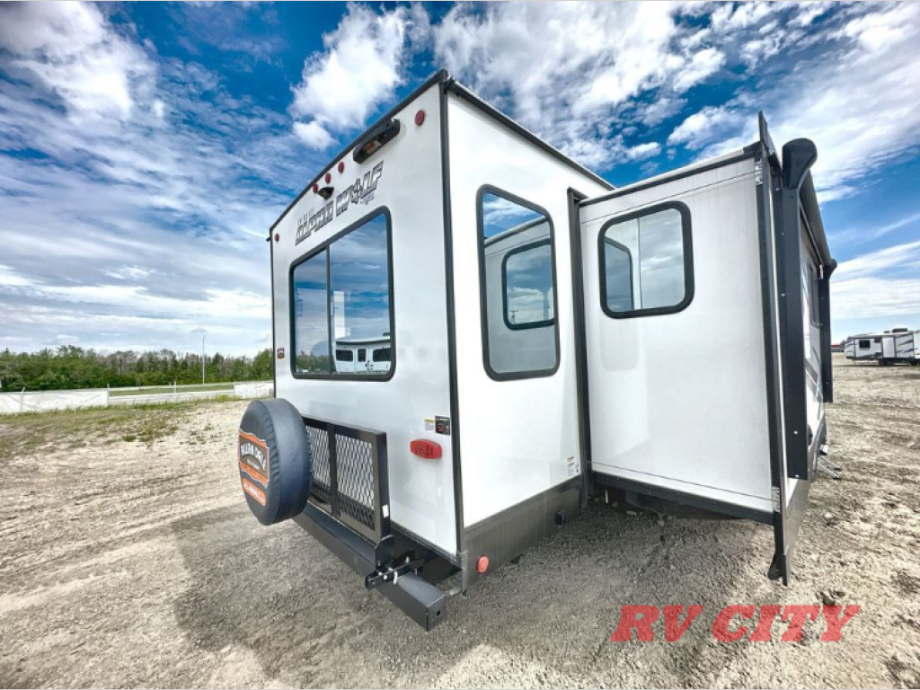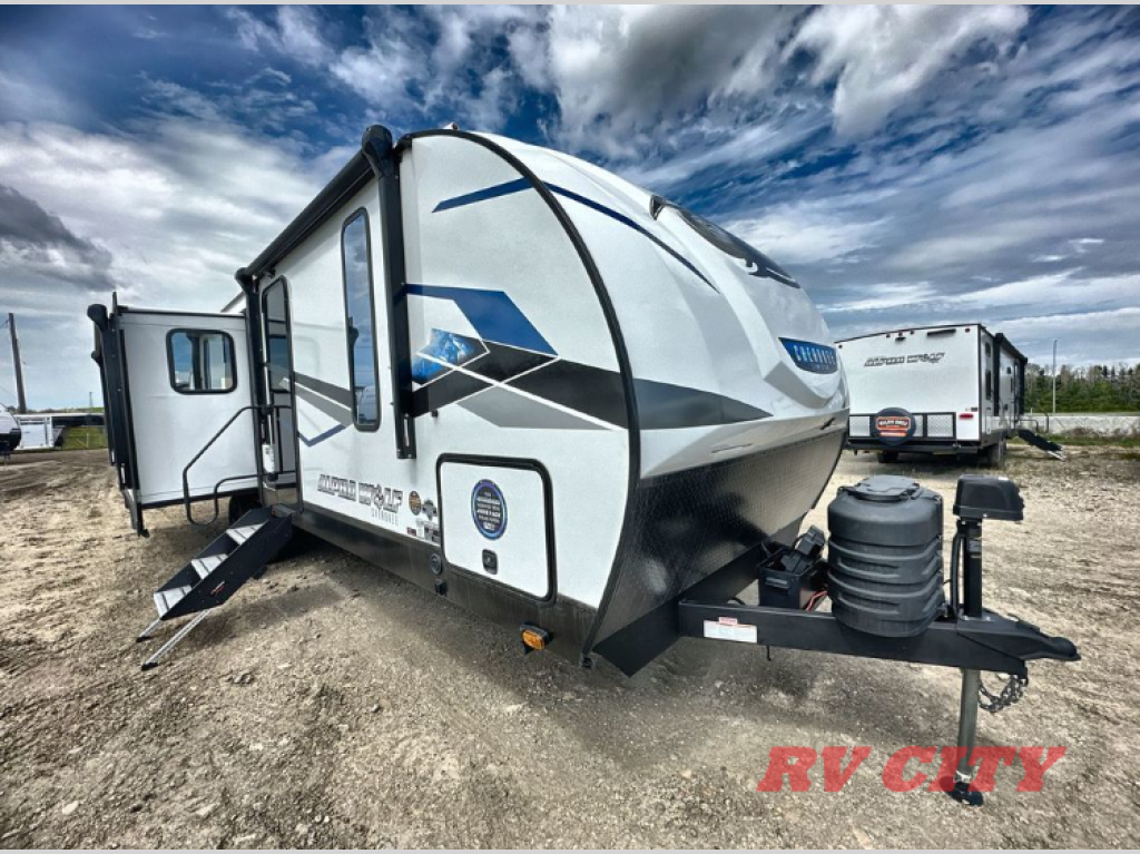 With any Cherokee Alpha Wolf travel trailer by Forest River you'll enjoy outstanding amenities, quality construction, and an affordable price. Each model features a "ToughBend" rigid skirt metal design, 5/8" tongue and groove plywood floor decking, and a "SuperTruss" roof structure that will hold up through years of camping memories. There is EZ-Clean deluxe kitchen backsplash indoors, along with an LED interior lighting package, a deluxe furniture pack, and many more comforts. These travel trailers include a utility center convenience light so you can easily check tank levels, and the outdoor TV prep means you can bring along your television for the big game. The Limited Package, Weather Guard Package, and Convenience Package include additional features found on select models, and there available options that can be added to further customize your Cherokee Alpha Wolf!