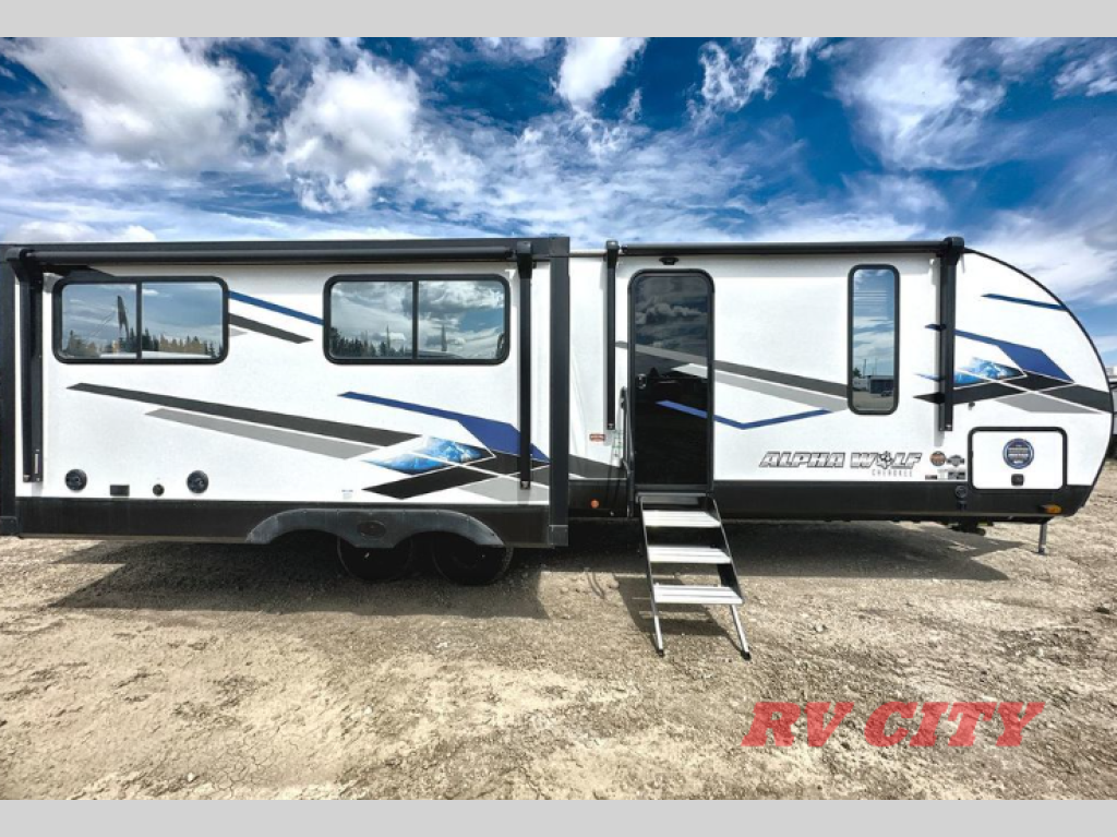 Fantastic Couples Trailer! New Graphics Package - Dual Awnings - Pass Thru StorageForest River Cherokee Alpha Wolf travel trailer 26RL-L highlights:
