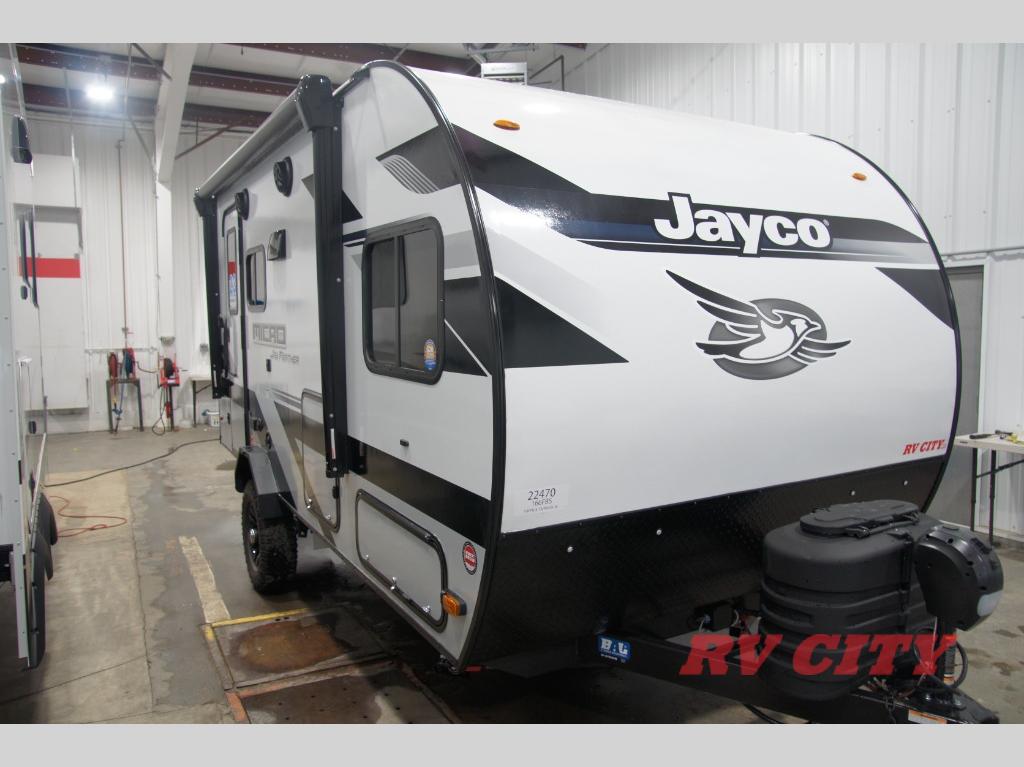 The Jay Feather Micro travel trailers by Jayco are for those looking for lightweight camping, while not sacrificing comfort and convenience. The modern retro graphics package is sure to be eye-catching, and the newly designed interiors will have you feeling right at home. Each model features an American-made frame with an integrated A-frame, Goodyear off-road tires, plus a new Rock Solid stabilizer system for a more stable camping experience. Some of the interior comforts you will enjoy are the residential vinyl flooring with cold crack resistance, screwed and glued cabinetry, and LED lighting. Adventure is waiting for you with a Jay Feather Micro travel trailer. Choose your favorite floorplan today!