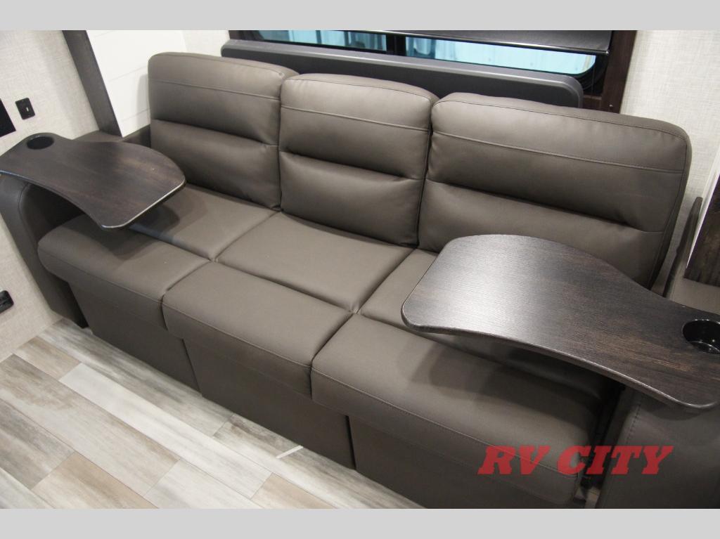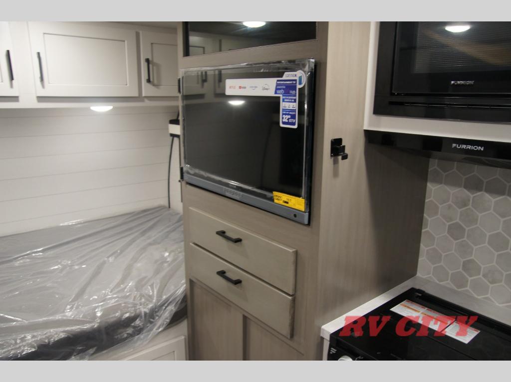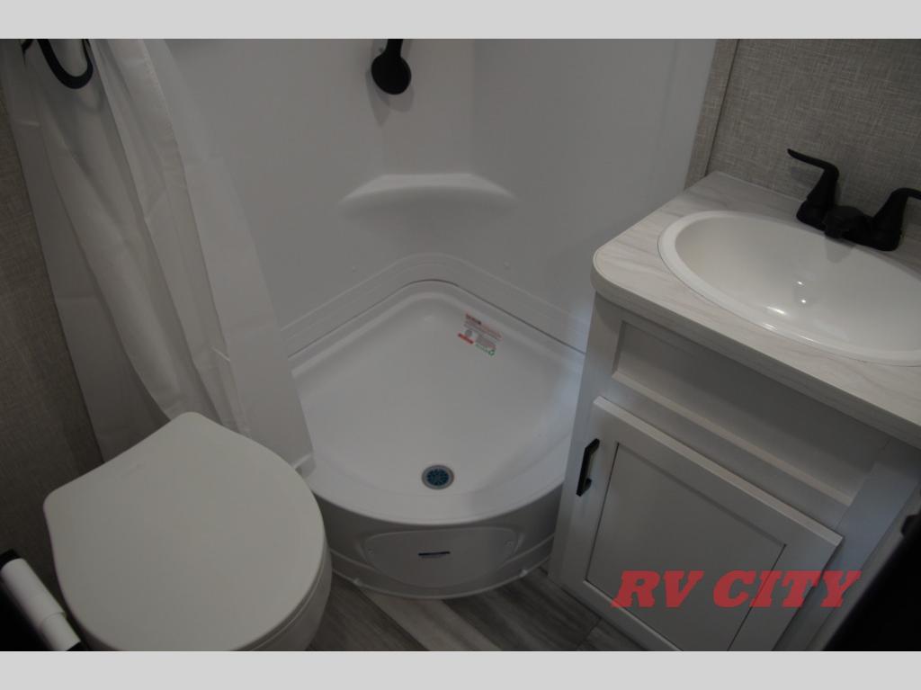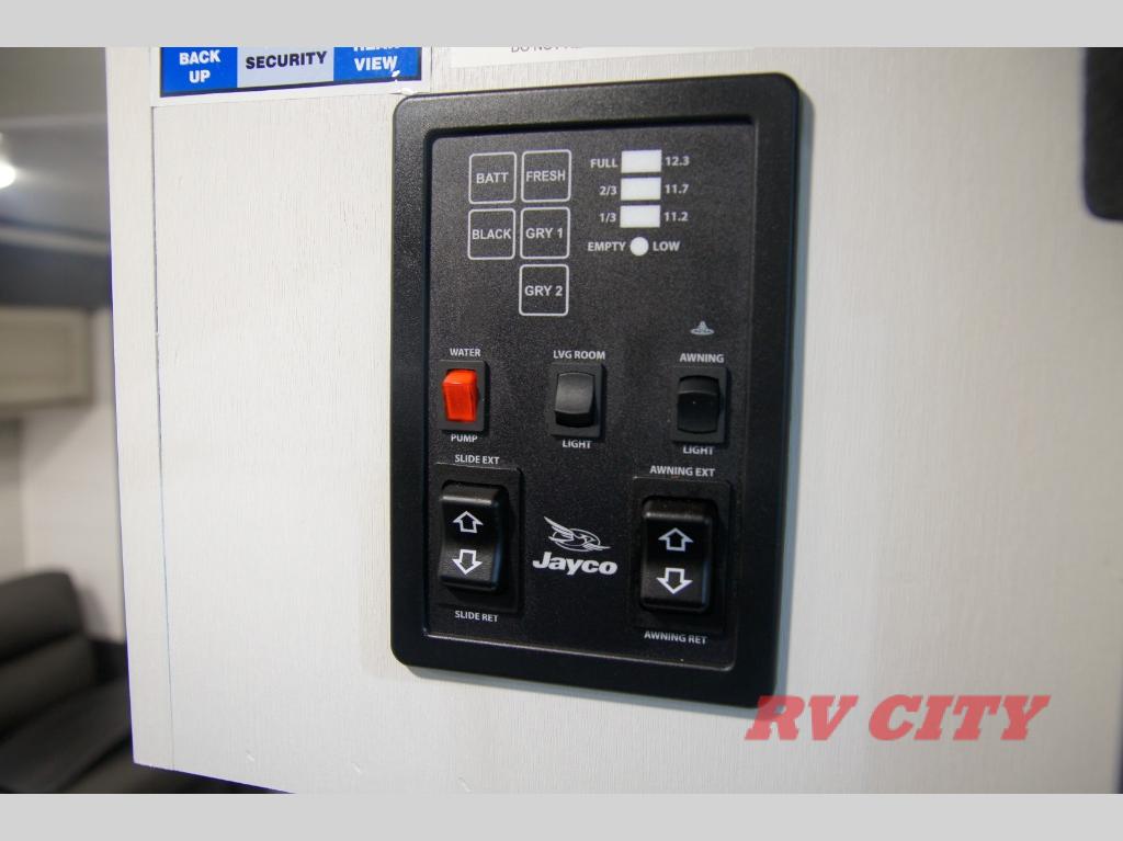 Weekends at the lake are made comfortable in this single slide out travel trailer. You will enjoy your own 54" x 80" front bed so you don't have to sleep on the floor, plus there is a jack-knife sofa if you have an overnight guest. The full bath features a radius shower with a skylight, plus plenty of storage space for your medicines and toiletries. This model includes a microwave oven and a three burner cooktop to prepare meals each day, and an 8 cu. ft. 12V refrigerator for perishables. You will also find an exterior refrigerator for cold drinks, plus a Jayport system with an LP quick connect.