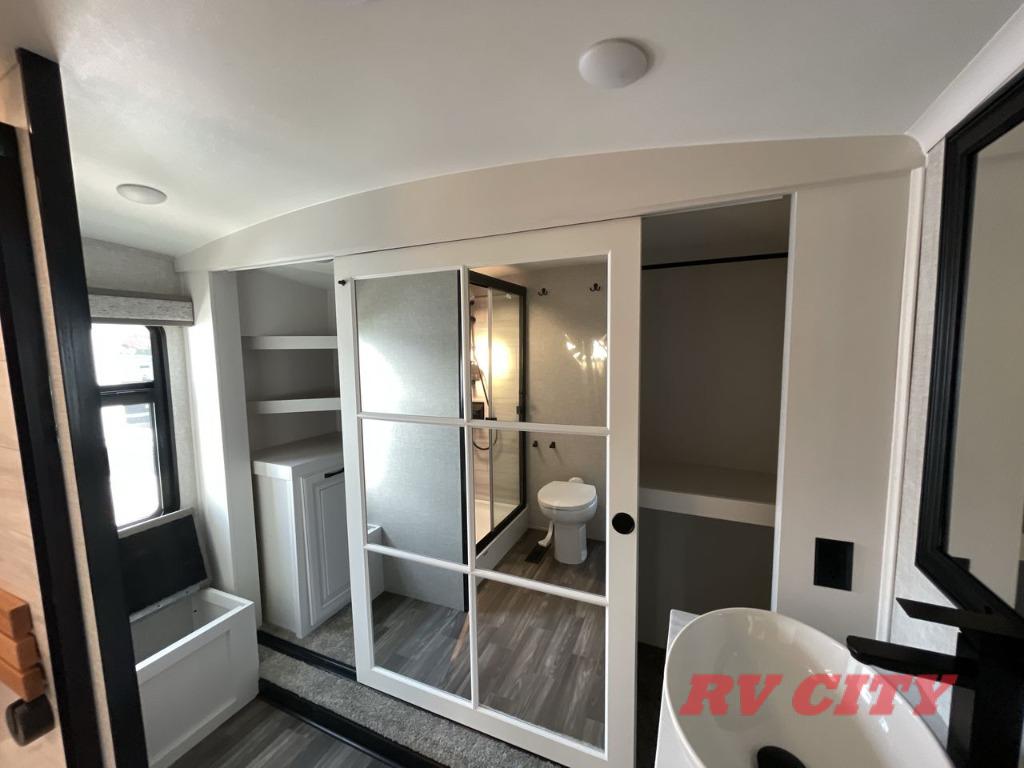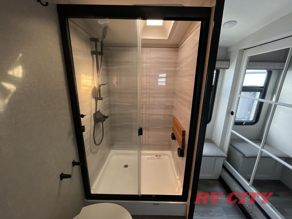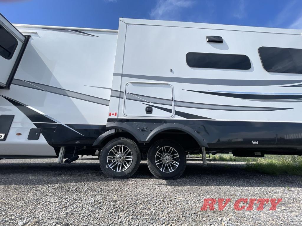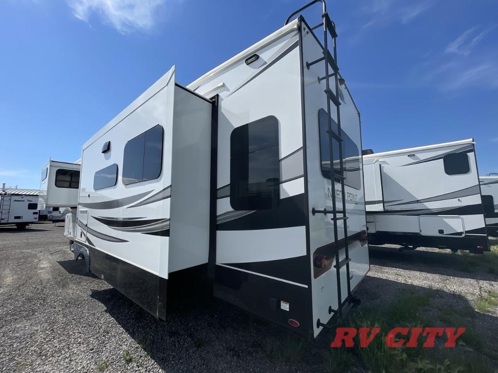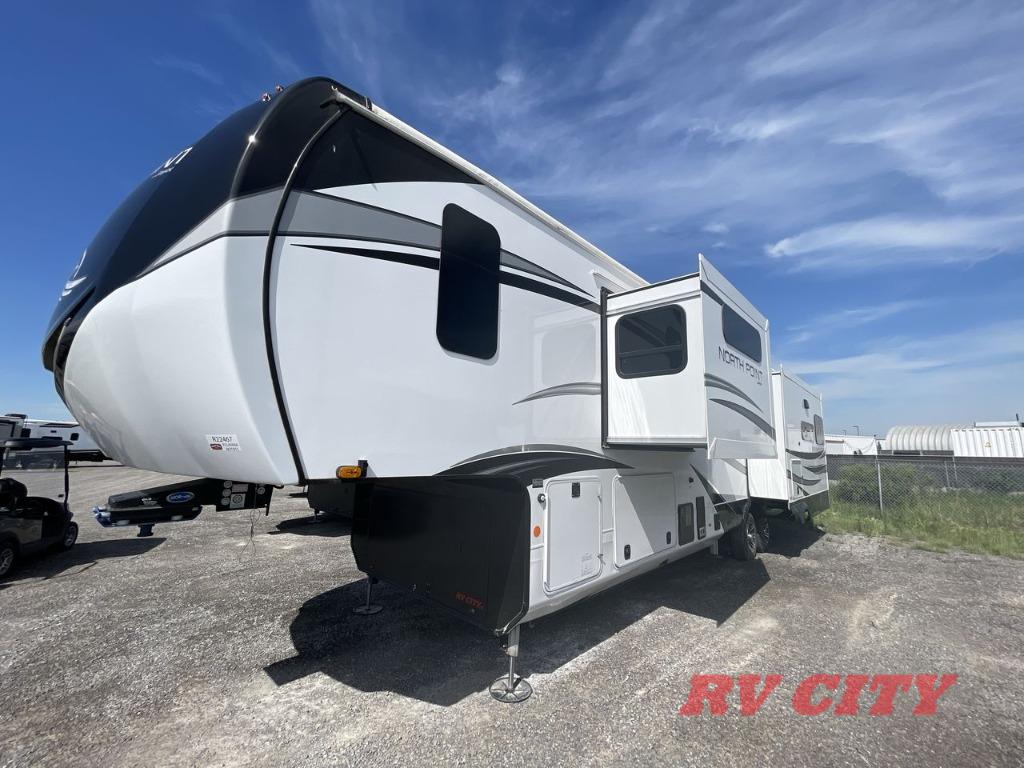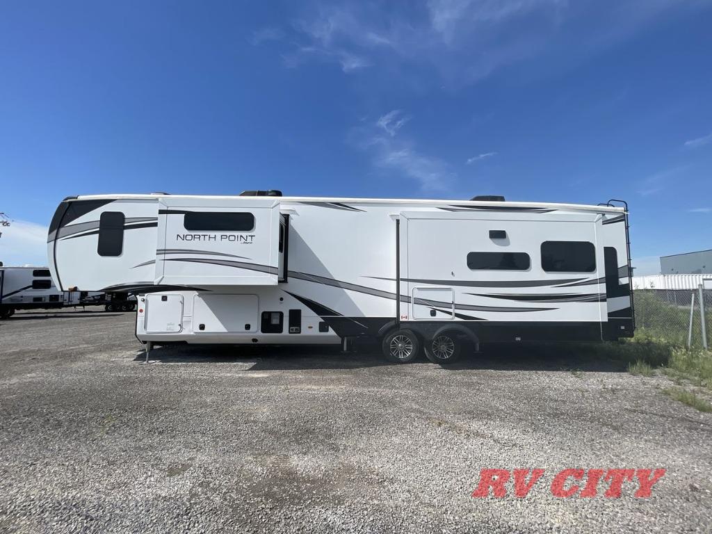 With any North Point fifth wheel by Jayco you begin with a strong foundation with a custom frame, designed and sized specifically to best support each unit. Constructed with Stronghold VBL™ aluminum framed, vacuum bond laminated walls and the Magnum Truss™ XL6™ roof system with a one-piece, seamless roof material, which is the strongest tested roof in the industry. The 5-Star Handling package is included with Uniroyal tires, a MORryde rubber pin box, Dexter axles with Nev-R-Adjust brakes, MORryde CRE-3000 rubberized suspension and wet bolt fasteners and bronze bushings. The interior has handcrafted hardwood glazed doors and drawers, vinyl flooring throughout, a vessel bowl sink with high rise faucet in the main bathroom, plus so much more you just have to see one to believe it all!