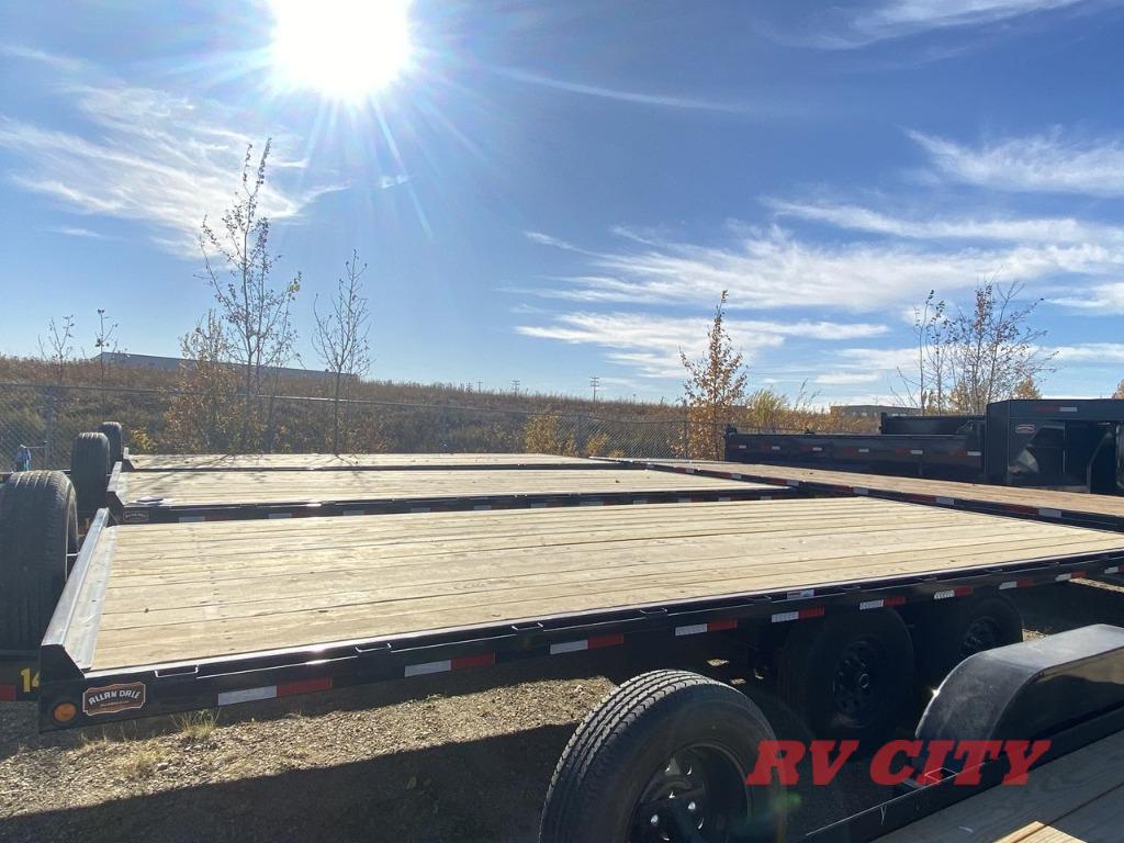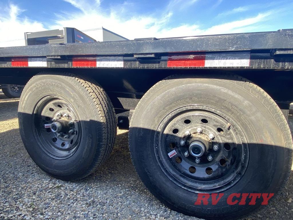 The 14OE 14K Over-the-Axle Bumper Pull Trailer combines durability and value with its 6-inch channel frame and tongue. The 102-inch-wide deck and 35-inch deck height provide ample space, while the full-length rubrail, stake pockets, and standard slide-in ramps ensure secure and versatile hauling. Tandem 7K axles, forward self-adjusting brakes, and radial tires offer reliable performance, and the adjustable coupler and 7,000#. drop-leg jack ensures easy hitching.
