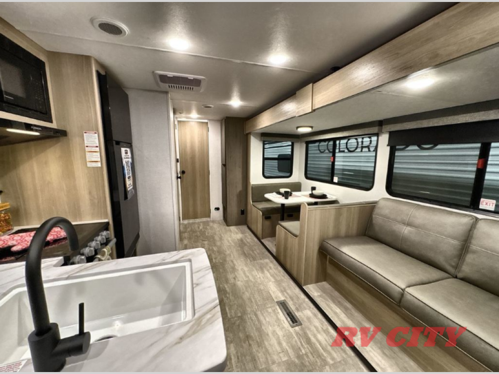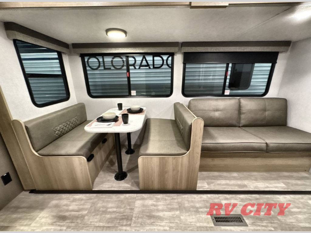 With any lightweight Colorado travel trailer by Dutchmen, you will enjoy plenty of interior space, quality construction, and conveniences to make each trip enjoyable. The durable roof structure includes a TPO roof and fiberglass insulation, and the insulated structure features a metal exterior panel and Lauan interior panel so you can enjoy your RV for years to come. You will appreciate the high output furnace to keep your warm during colder camping months, and the magnetic baggage door catches will let you easily pack in your gear. There is backup camera prep and solar prep on each model, along with a power awning for protection against the elements when you sit outside. Inside, the LED lighting will make your space bright and open, and the upgraded residential flooring will be easy to keep clean.