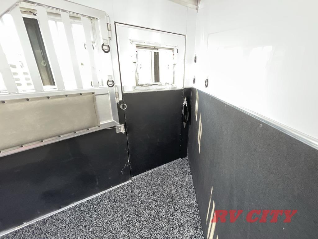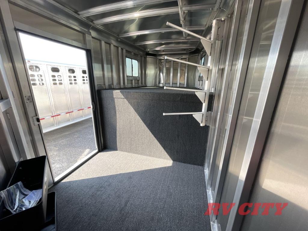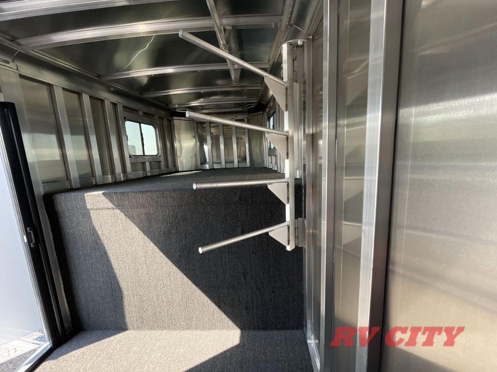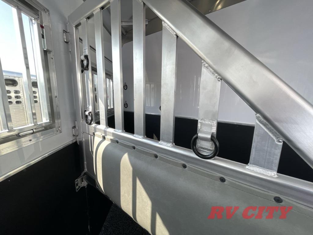 Available in 2 to 6 horse floorplans, the Model 9600 includes a spacious 72” dressing room with additional storage and prep space for long days on the road. Optional configurations include a 50” short wall for more compact towing needs.
