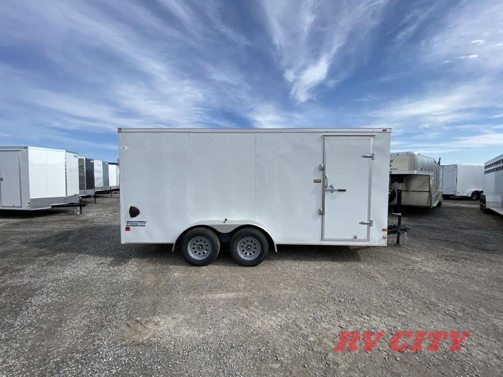 7' X 16' Cargo Trailer, Rear Ramp, Ready to Haul!The Passport® is your ticket to carefree and reliable cargo hauling that’s easy on your wallet. It’s a perfect fit for recreational and light duty applications. Although classified as an “entry-level” trailer, the Passport® is loaded with quality features found on much more expensive trailers. The standard V-nose is not only stylish, but improves handling and MPG. No matter your hauling needs . . . count on the Passport® to deliver your valuables safe and secure to your final destination.