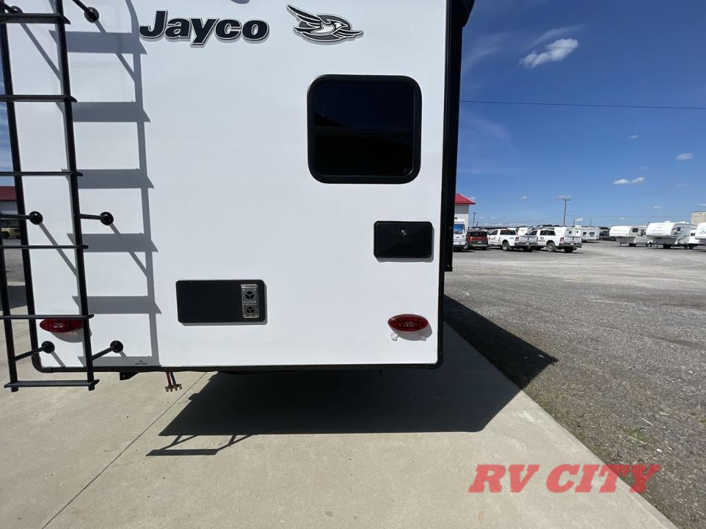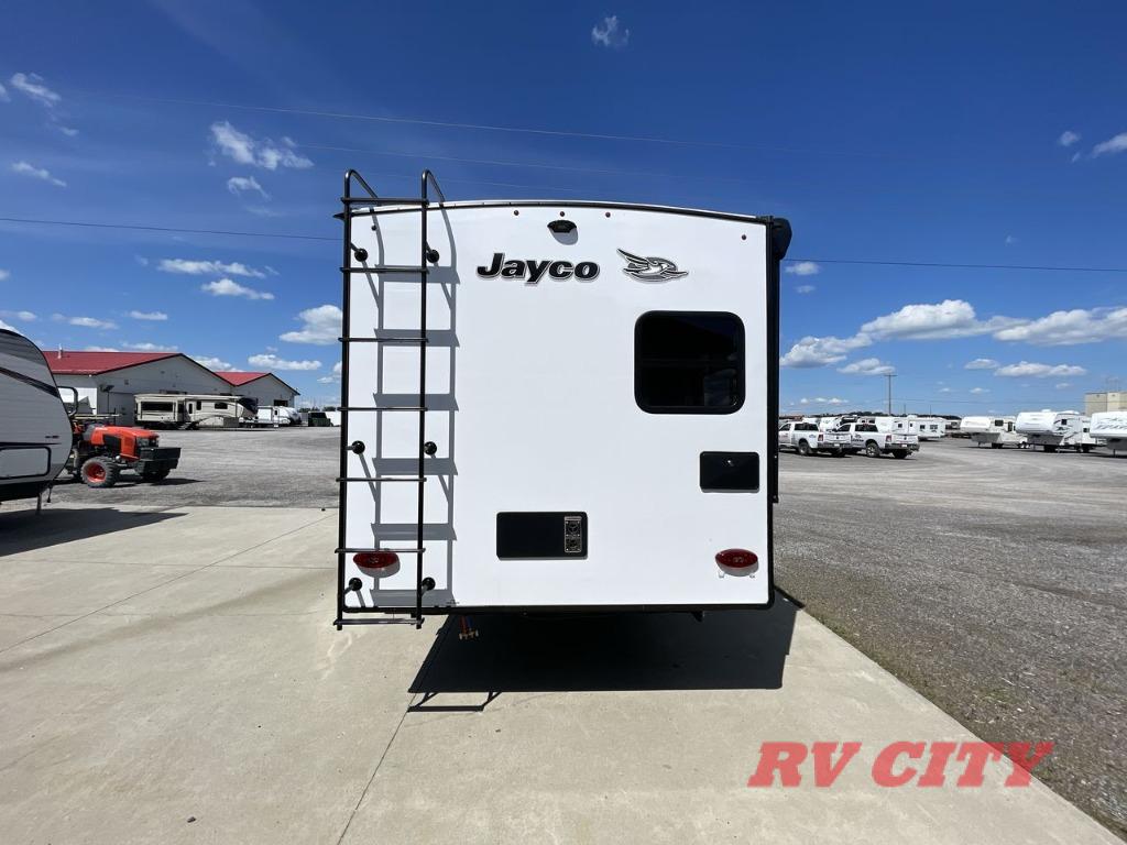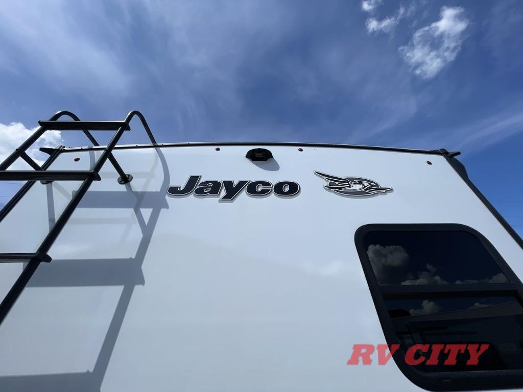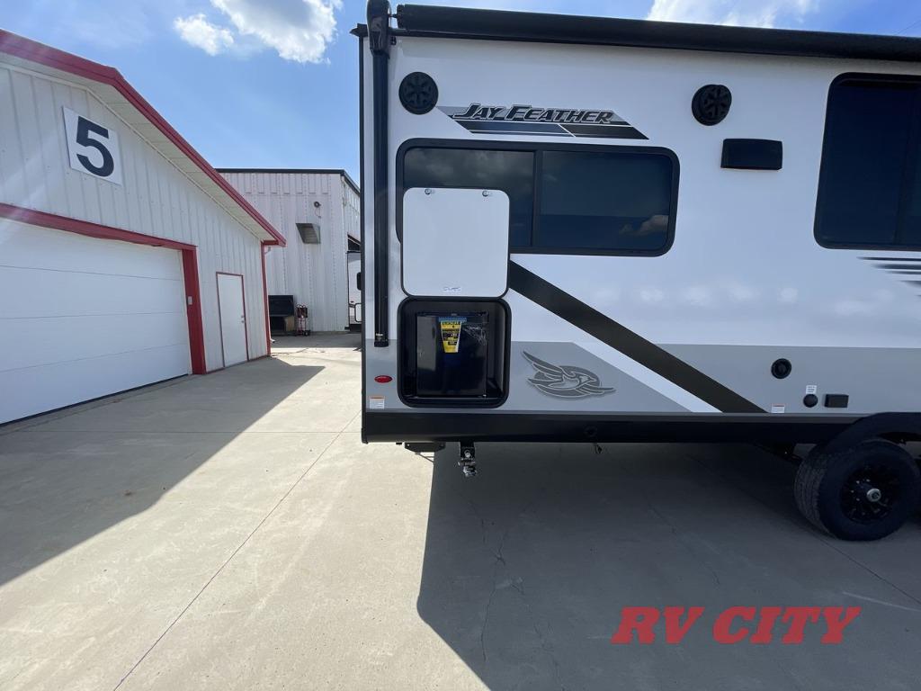 With any Jay Feather travel trailer by Jayco, you will enjoy lightweight towing, convenient exterior amenities, and at-home comforts inside! The Overlander 1 Solar Package included within the Jay Sport Package comes with a 200W solar panel and a 30-amp digital controller so you can enjoy some off-grid camping. There is also a modern graphics package with a dual-colored sidewall, LCI Solid Step fold-down aluminum tread steps on the main entry door, and Climate Shield 0 -100° F tested weather insulation package that will allow you to camp in all sorts of climates. The Customer Value Package will make time outdoors easier than ever with a power tongue jack and a Rock Solid stabilizer system, plus American-made nitro-filled Goodyear tires with self-adjusting electric brakes. More exterior features include a Keyed-Alike locking system, marine grade exterior speakers, a Magnum Truss roof system, and the list goes on! And we haven't even touched on the interior comforts, like the residential style seamless countertops and vinyl flooring throughout, decorative backsplash, handcrafted hardwood door/drawer fronts, and multiple USB charging ports to keep you going!