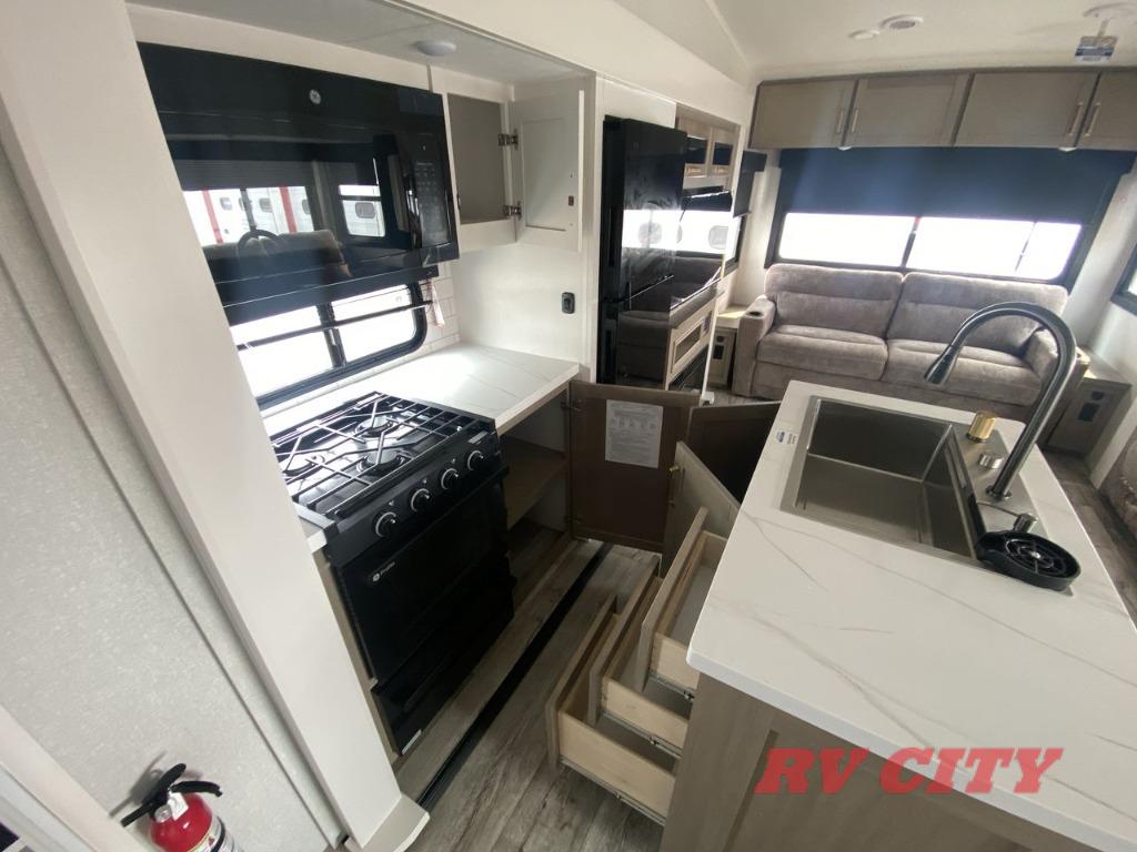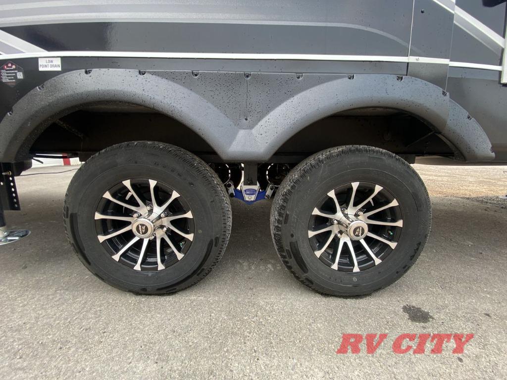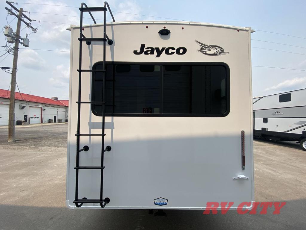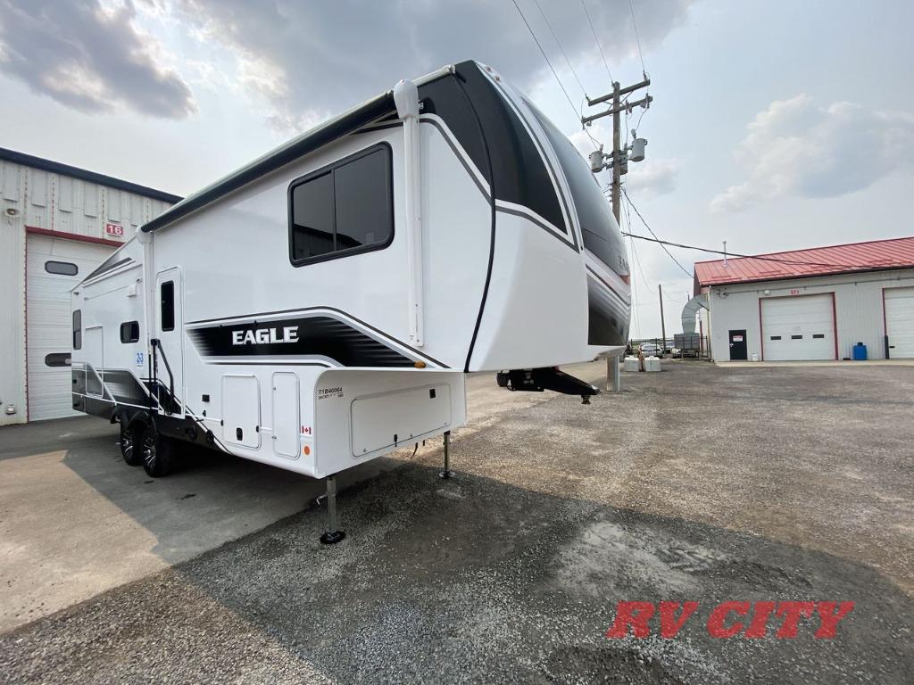 With any Eagle HT fifth wheel or travel trailer by Jayco you will enjoy a smooth drive thanks to the 4 Star Handling Package, Goodyear Endurance tires, and MORryde CRE-3000 rubberized suspension. The Customer Value Package includes amenities that are sure to make camping easier than ever, like the 60K on-demand water heater, Keyed-Alike lock system, 15,000 BTU "Whisper Quiet" A/C, and more. Handcrafted and glazed door/drawer fronts will make your space feel more like home, along with residential vinyl flooring throughout, GE appliances, and blackout roller shades with reflective side throughout to keep the sun out when you want to sleep in. Each model also includes a NuVo H2O water treatment system with filters included, interior and exterior "Blue Sync" audio connect with MB Quart Sound for your TV and phone, and 100% no floor vents for added comfort and convenience!