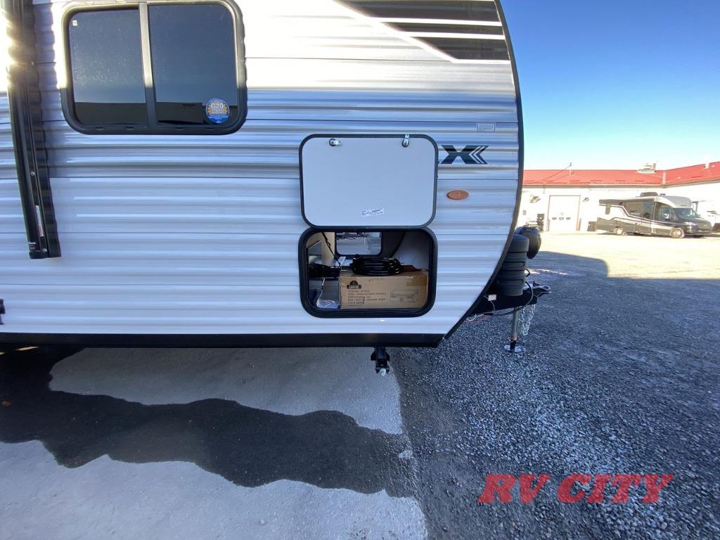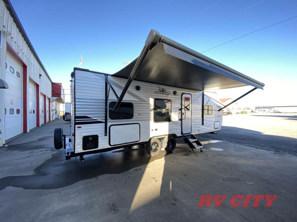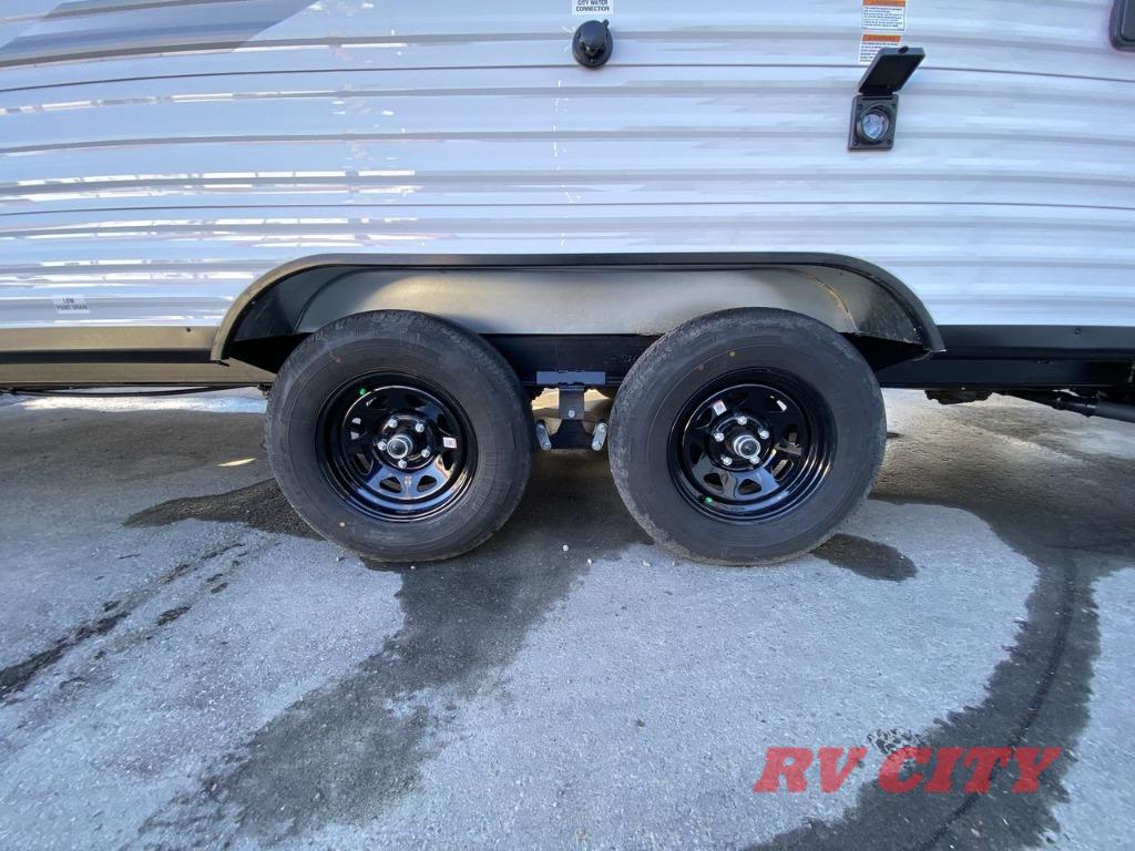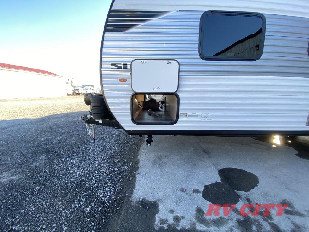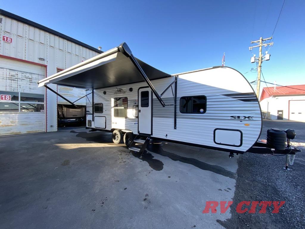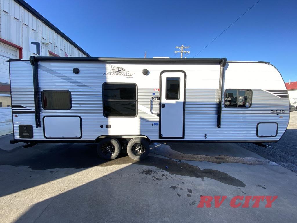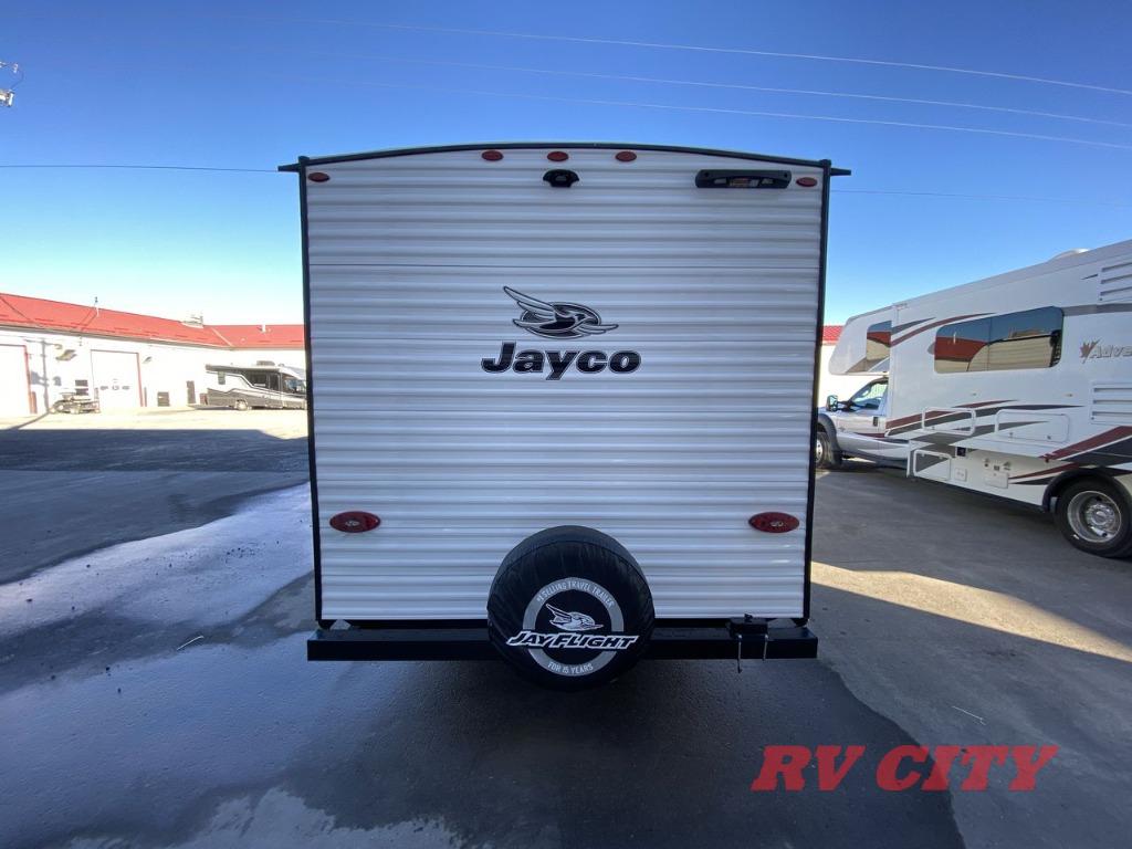 The Jayco Jay Flight SLX travel trailer is quite easy to own because it is lightweight for an easier towing experience. Built on a fully integrated A-frame with galvanized-steel, impact-resistant wheel wells, the Jay Flight SLX has quality at its very foundation. That quality continues on to the electric self-adjusting brakes, easy-lube hubs, Magnum Truss roof system, and LP quick connect. Some of what the mandatory Customer Value Package includes is backup camera prep, Keyed-Alike entry and baggage doors, and an on-demand tankless water heater.