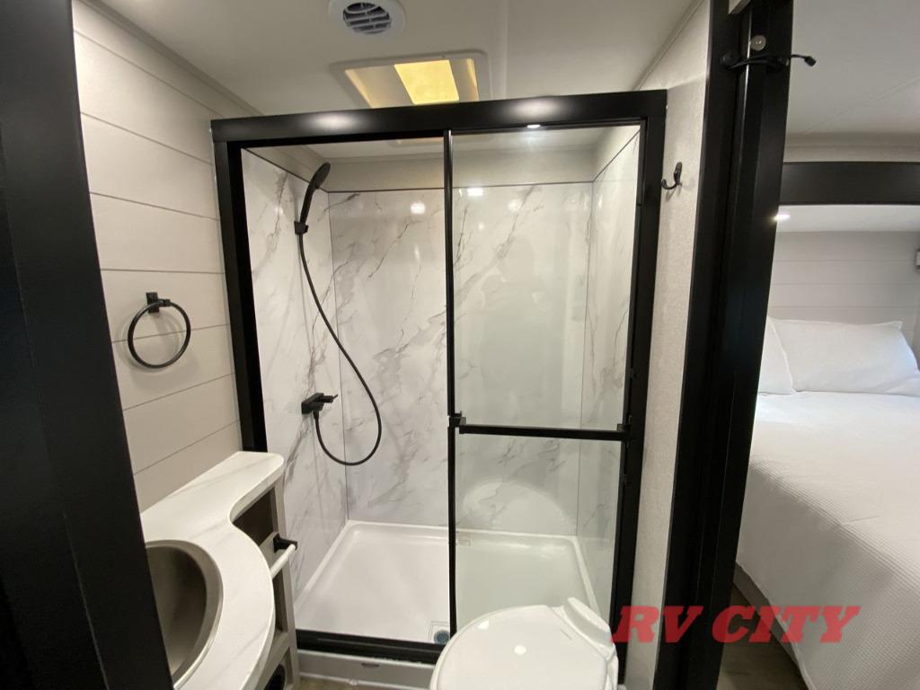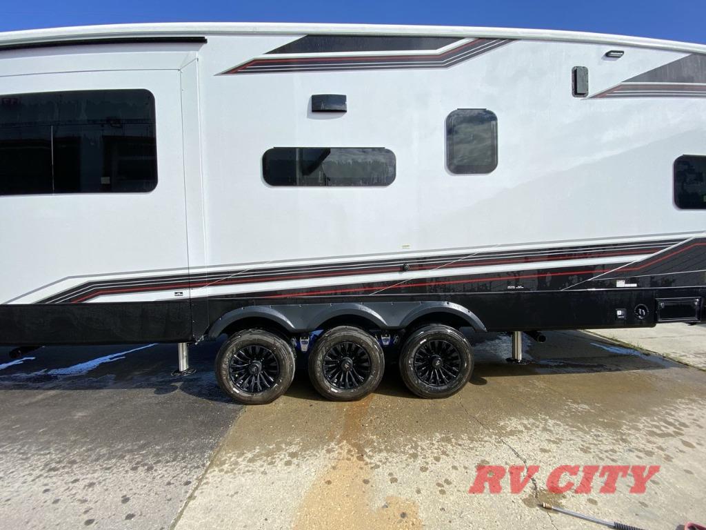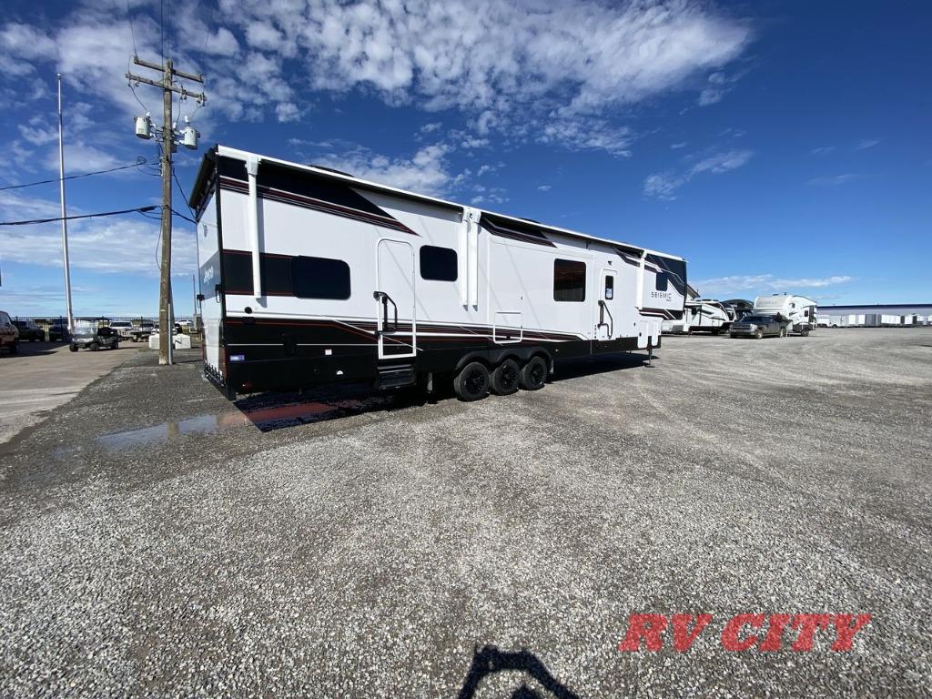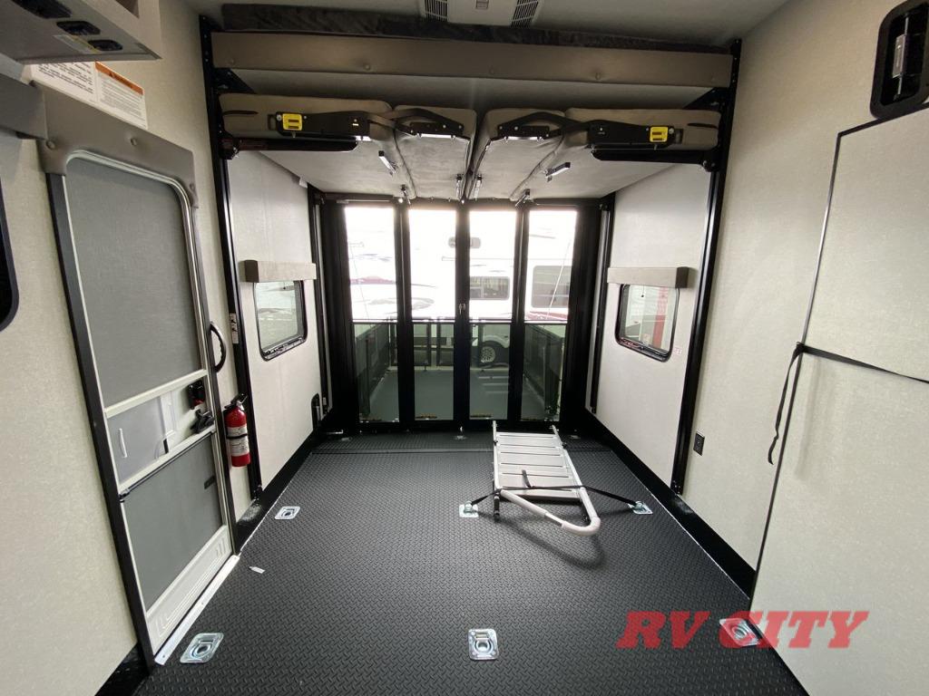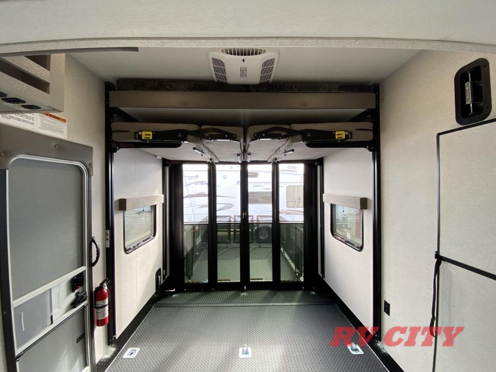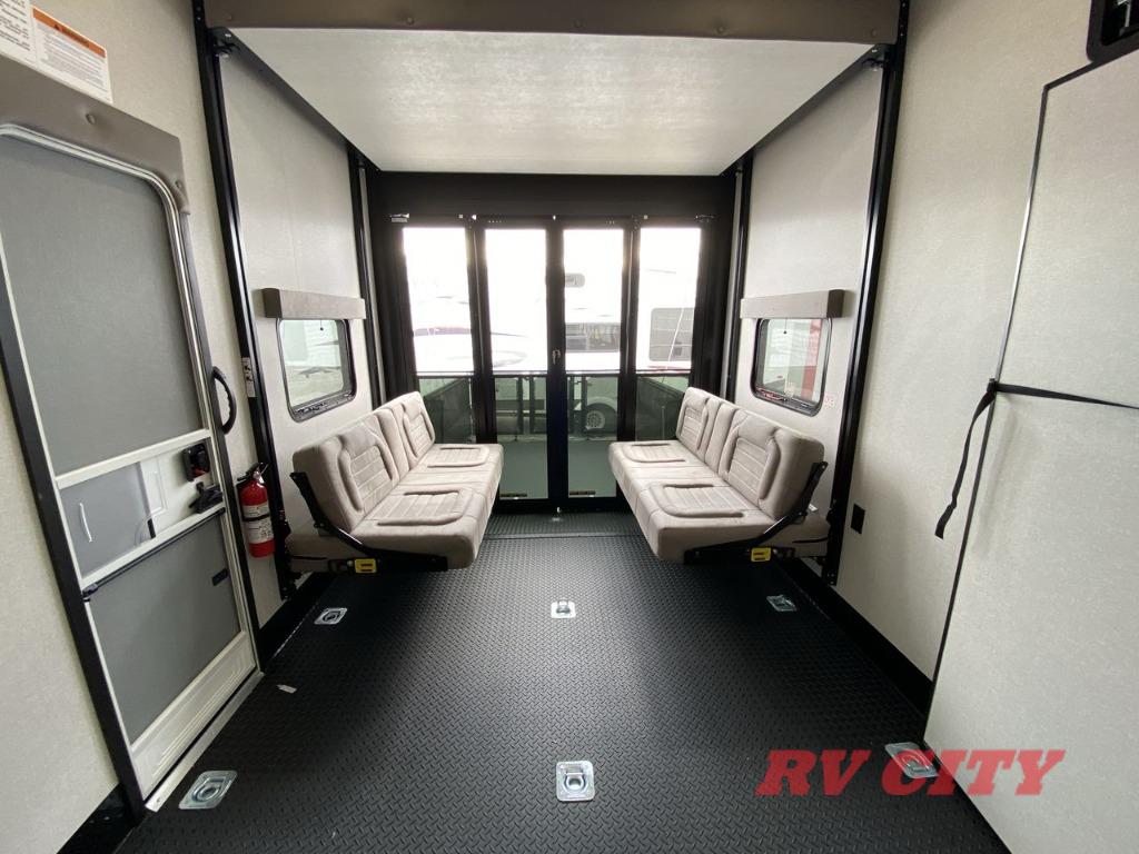 The Seismic Toy Hauler has room for all your toys with its 102-inch wide-body design, and is equipped to get you wherever you want to go. Seismic has a standard ramp patio with rear steps, three-seasons room and a 5.5K generator, 17.5-inch Uniroyal "H" rated tires and 6-point hydraulic landing gear. The Seismic Toy Hauler is warrantied for full-time RV use with Jayco’s 2+3 warranty.