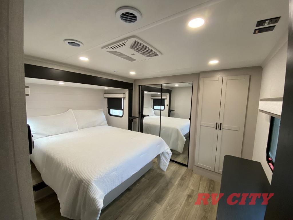 Private Front Suite with queen bed slide, walk-in closet & washer/dryer prep