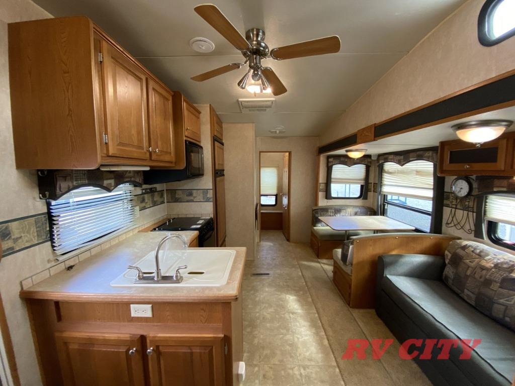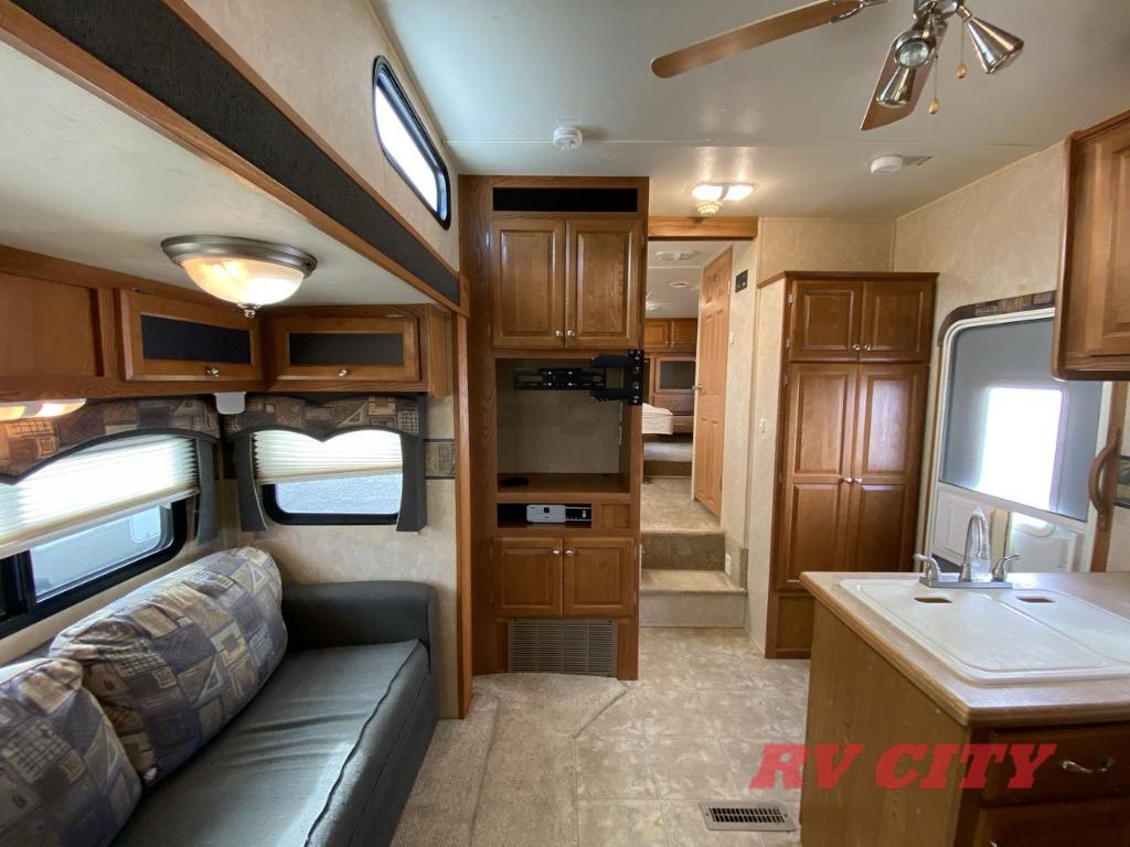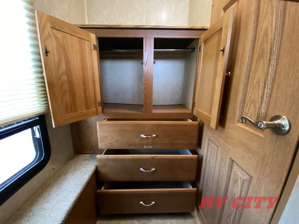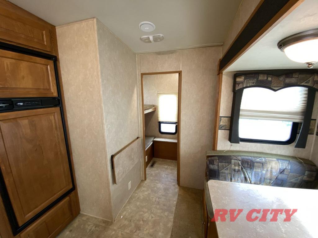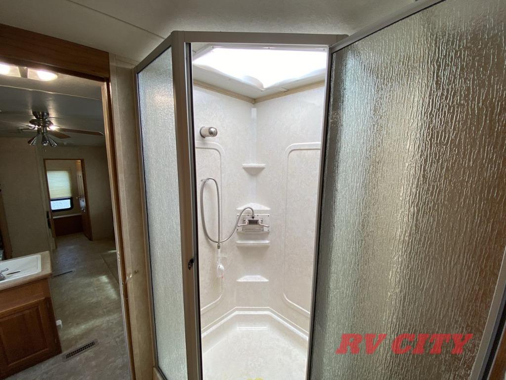 Double Bed Size Bunks, TV Cabinet, Dinette Plus or Free-Standing Dinette/Chairs, Hide-A-Bed or Sofa Bed, 3 Burner Range, Double Kitchen Sink, Pantry, Ent. Center, Neo-Angle Shower, Queen Bed Slide, TV Cabinet, Closet, Overhead Storage, and More.