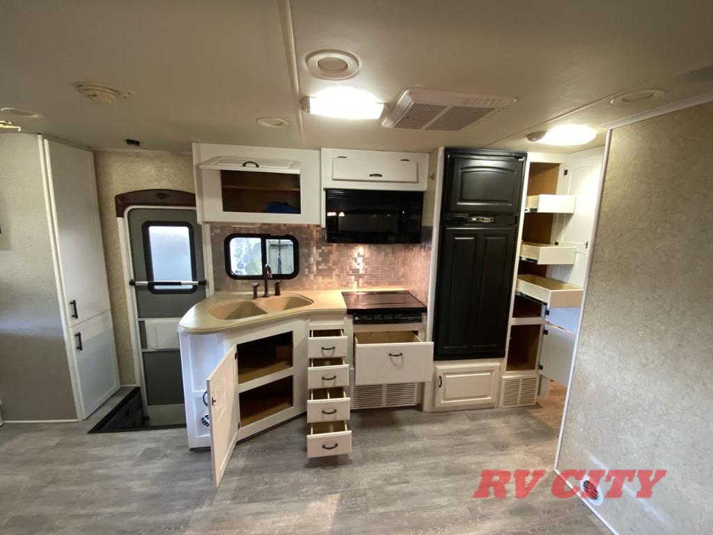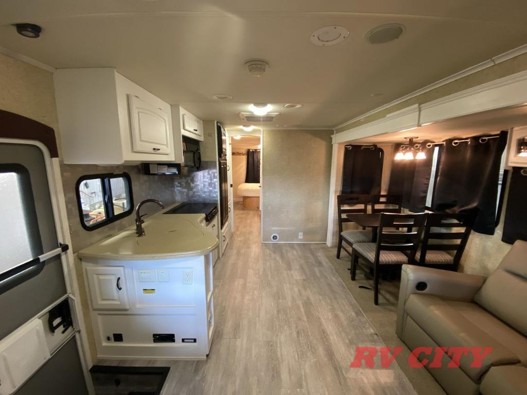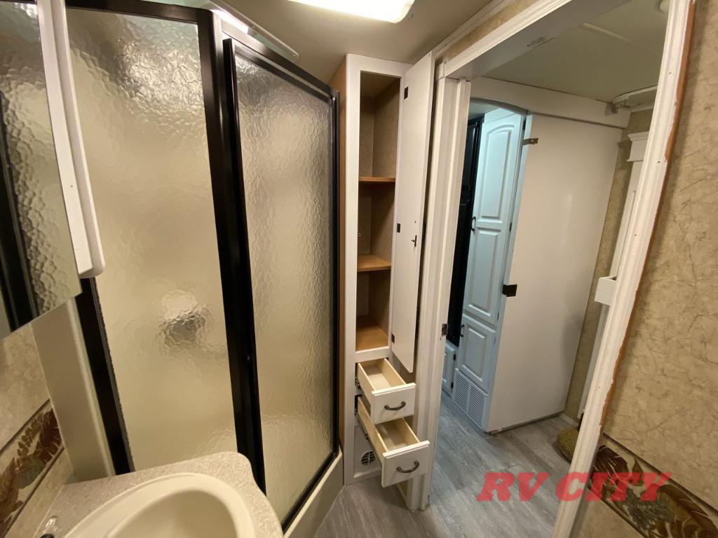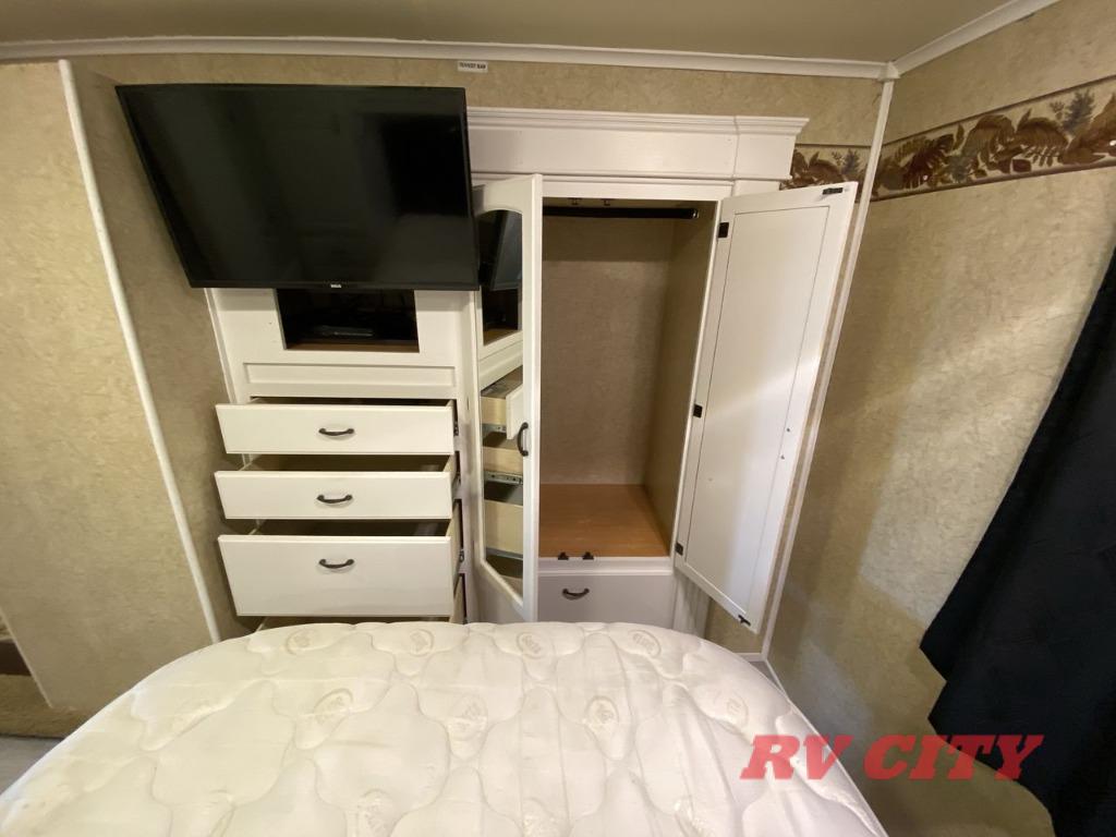 Double Slide Class C Bunkhouse w/Rear Queen Bed, Chest, Wardrobe, Overhead Cabinet, 2nd Wardrobe/TV Cabinet & Bunk Bed Slideout, LCD TV, Angle Shower, Lav., Med. Cabinet, Booth Dinette or Table & Chairs Opt. & Hide-A-Bed Sofa Slideout, Pantry, Refrigerator, 3 Burner Range w/Microwave, Double Kitchen Sink, Swivel Chair w/Overhead Cabinet, Front Ent. Center w/Pull-Out Bunk or Opt. Cab-Over Bunk, 18' Awning, Exterior Storage & Much More.