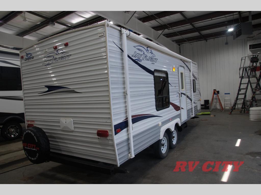 Jay Flight Travel Trailer w/Rear Bath w/Tub Shower, Lav., Medicine Cabinet & Wardrobe, Refrigerator, Microwave, 3 Burner Range, Double Kitchen Sink, TV Cabinet, Booth Dinette w/Overhead Cab. & Radio, J-Steel Sofa, Front Queen Bed w/TV Shelf, Chests & Shirt Wardrobes, Overhead Cabinets Throughout, Pass Thru Storage, Opt. 15' Awning and Much More!