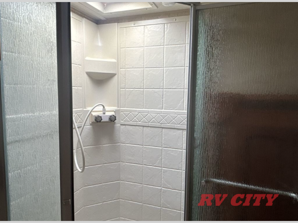 Double Slide Sabre Silhouette FW w/Rear Kitchen Including Pantry, Refrigerator, 3 Burner Range, Dbl. Kitchen Sink, Overhead Cabinets, Booth Dinette & Sofa Slide, Ent. Center, 2 Rocker Recliners, Step Up to Bed & Bath w/Neo-Angle Shower, Toilet & Sink, Lav., Wardrobe/Drawer Cabinet Slideout, Residential Refrigerator w/Wardrobes Both Sides of Bed and Much More! Available Options May Include: Private Bath.