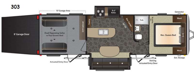 Impact model 303 by Keystone RV has got you covered during all of your adventure weekends! This toy hauler travel trailer featuring two slides, a 10' garage area, and 30 gallon fuel station will easily take your fun up a notch or two!