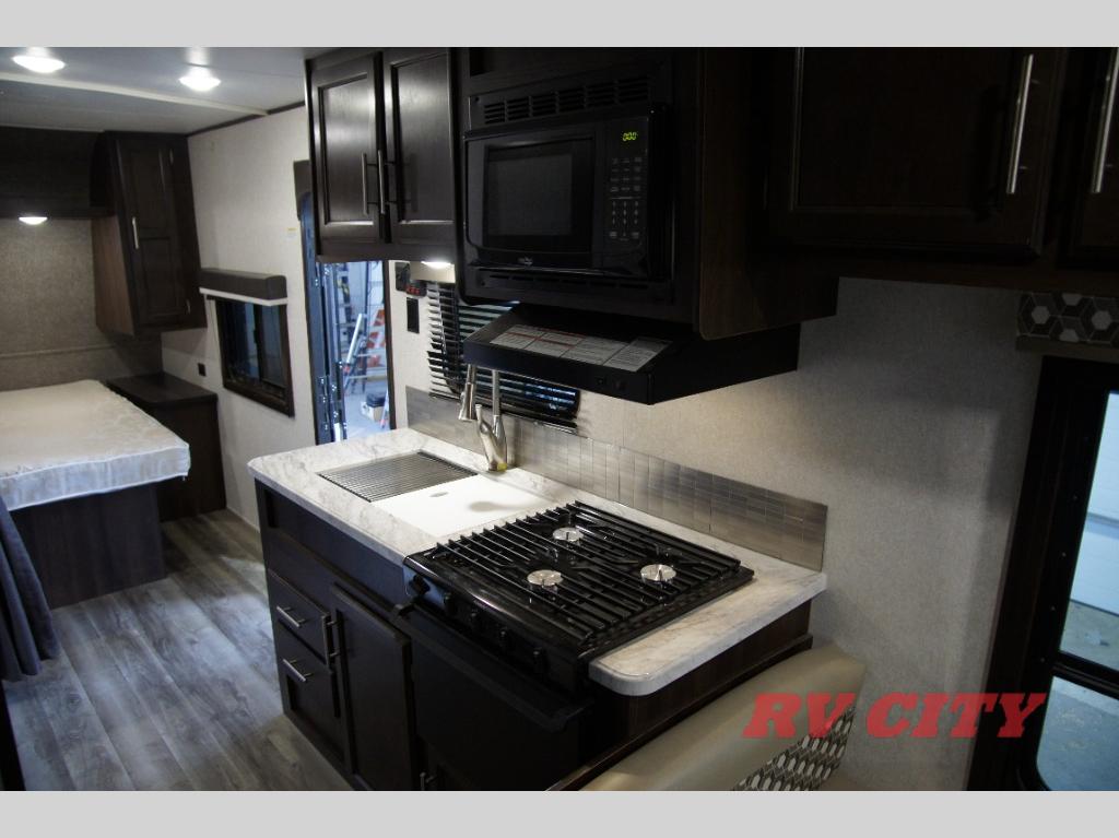 Just imagine sleeping and cooking inside a travel trailer while camping on your next trip. This Jay Flight SLX Western Edition provides sleeping space for five, plus full kitchen and bath amenities. The semi-private front bedroom offers a queen-size Simmons mattress. You can get cleaned up in the tub/shower in the full bathroom, plus relax on the jackknife sofa or booth dinette afterwards. It's time to throw away the tent and make an upgrade to this unit today!