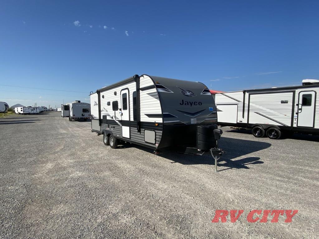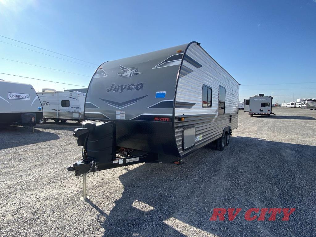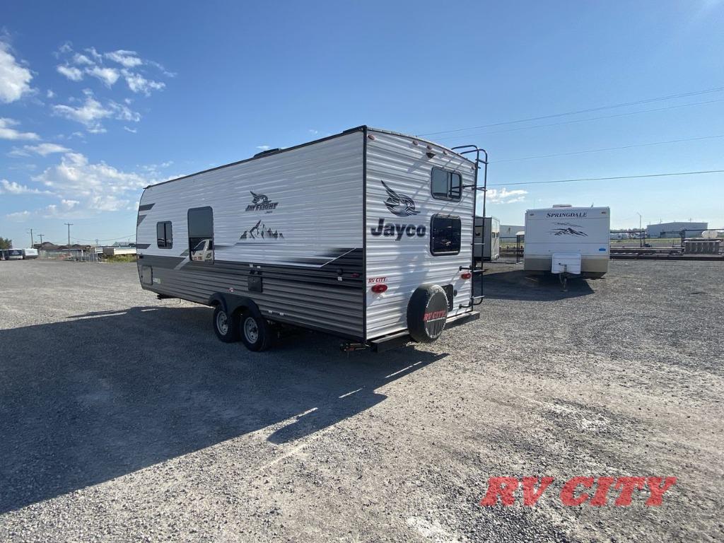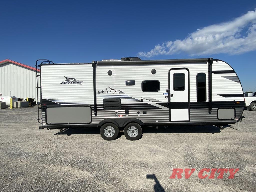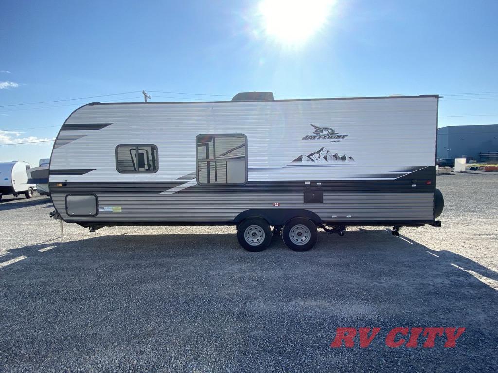 These Jayco Jay Flight travel trailers have been a family favorite for years with their lasting power and superior construction. An integrated A-frame and magnum truss roof system holds them together. When you tow one of these units you're towing the entire unit and not just the frame. With dark tinted windows, you have more privacy and safety. The vinyl flooring throughout will be easy to clean and maintain too. Come find your favorite model today!
